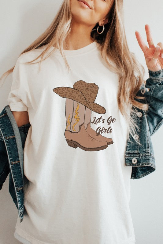 Let's Go Girls Cowgirl Boots Comfort Colors Plus Graphic Tee