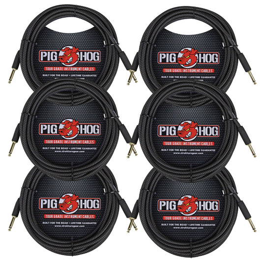 6 Pack Pig Hog PCH20BK Woven Black Vintage Series Instrument Cable, 20 Ft - New