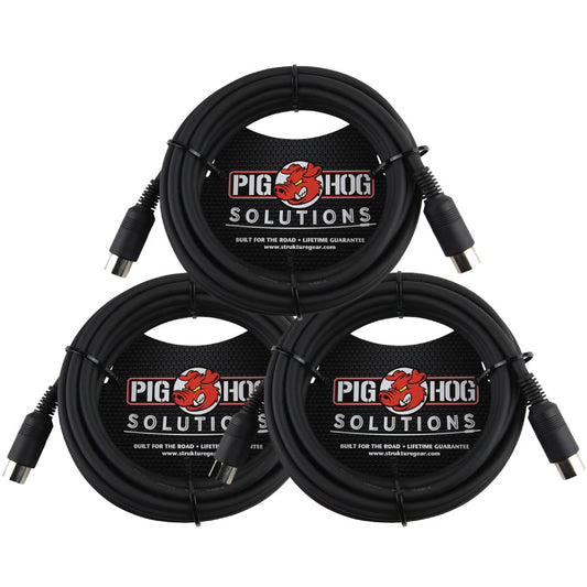 3 Pack Pig Hog Solutions PMID15 - 15ft MIDI Cable Black Instrument Interface - New
