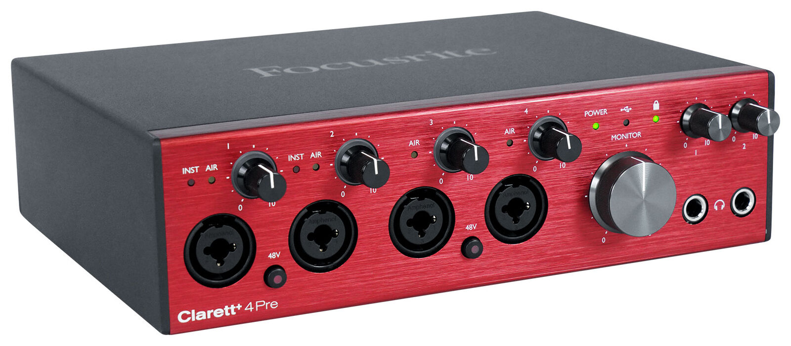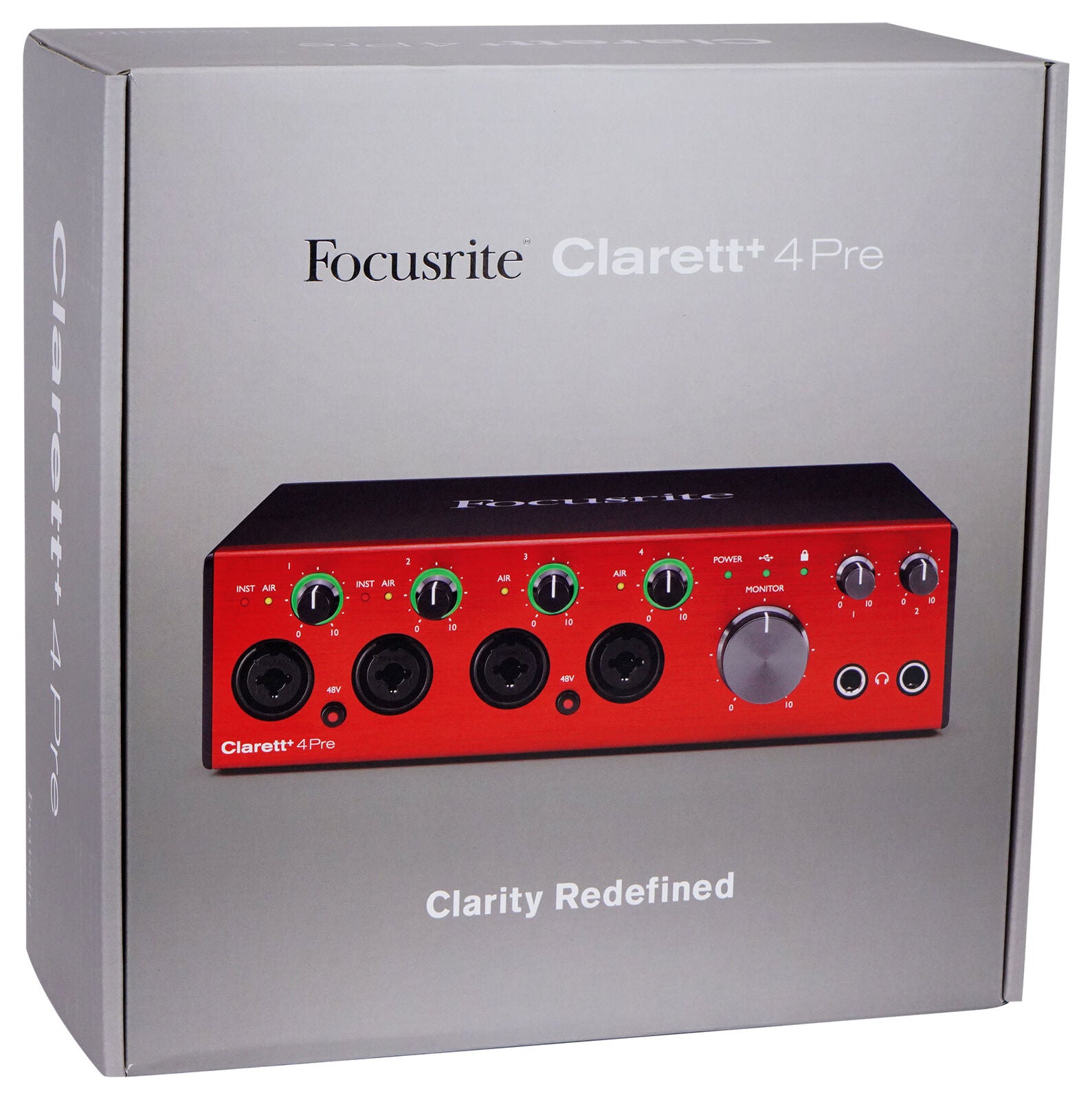 Focusrite fitted the Clarett+ 4Pre with mic preamps that were designed exclusively for the Clarett+ range with loads of pristine gain and vanishingly low noise. In addition, these preamps include the proprietary Air feature that switches in an analog model of Focusrite's acclaimed classic transformer-based ISA mic pre, breathing life into your recordings. If you've always wanted vocals that shimmer with presence and silky air, then try recording with the Clarett+ 4Pre. You will undoubtedly be impressed.