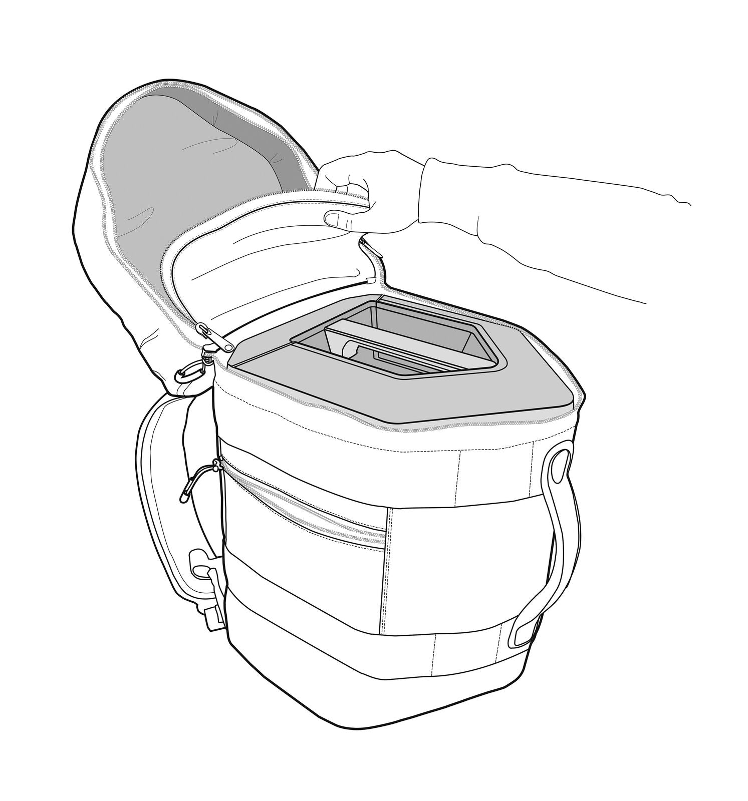 - Three zipped storage compartments allow you to safely transport cables and small mixers.