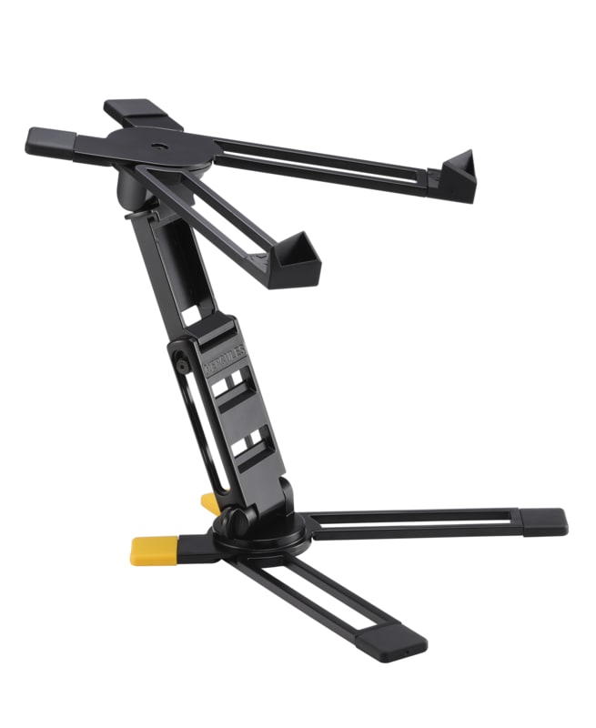 True to the Hercules name, the DG400BB Laptop Stand delivers rugged strength with smart, gig-ready design. Built to handle laptops up to 22 pounds, this stand features extra rear legs for superior stability and confidence on any stage or studio desk.