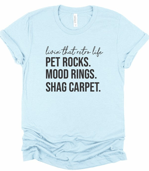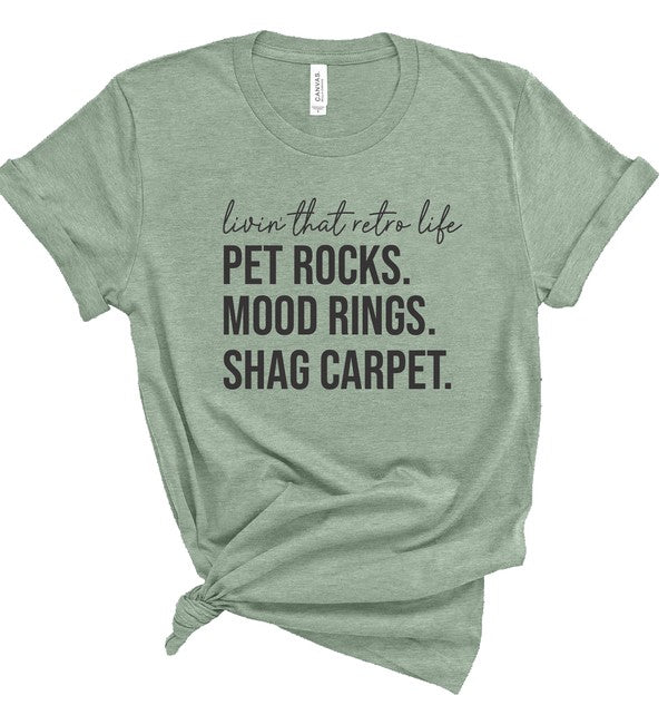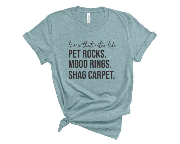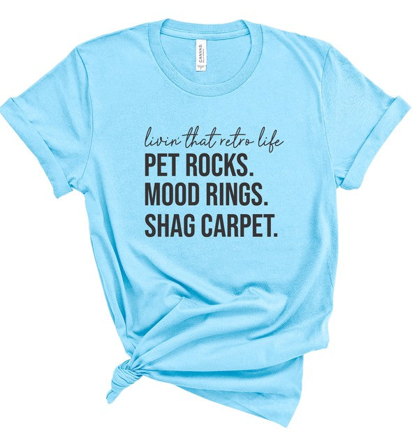 Livin That Retro Life Pet Rocks, Mood Rings. Shag Carpet Soft Style Top Graphic Tee