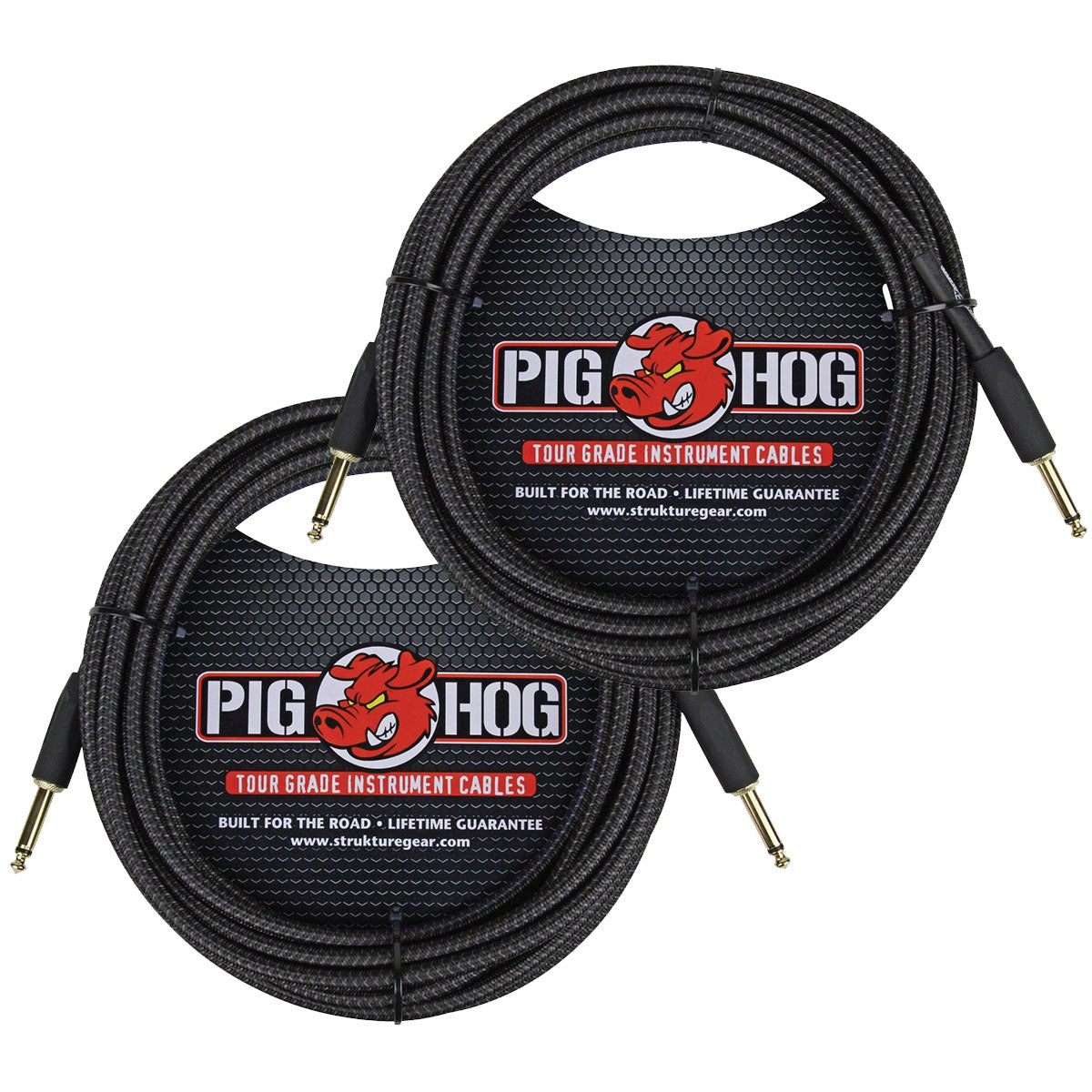 2 Pack Pig Hog PCH20BK Woven Black Vintage Series Instrument Cable, 20 Ft - New