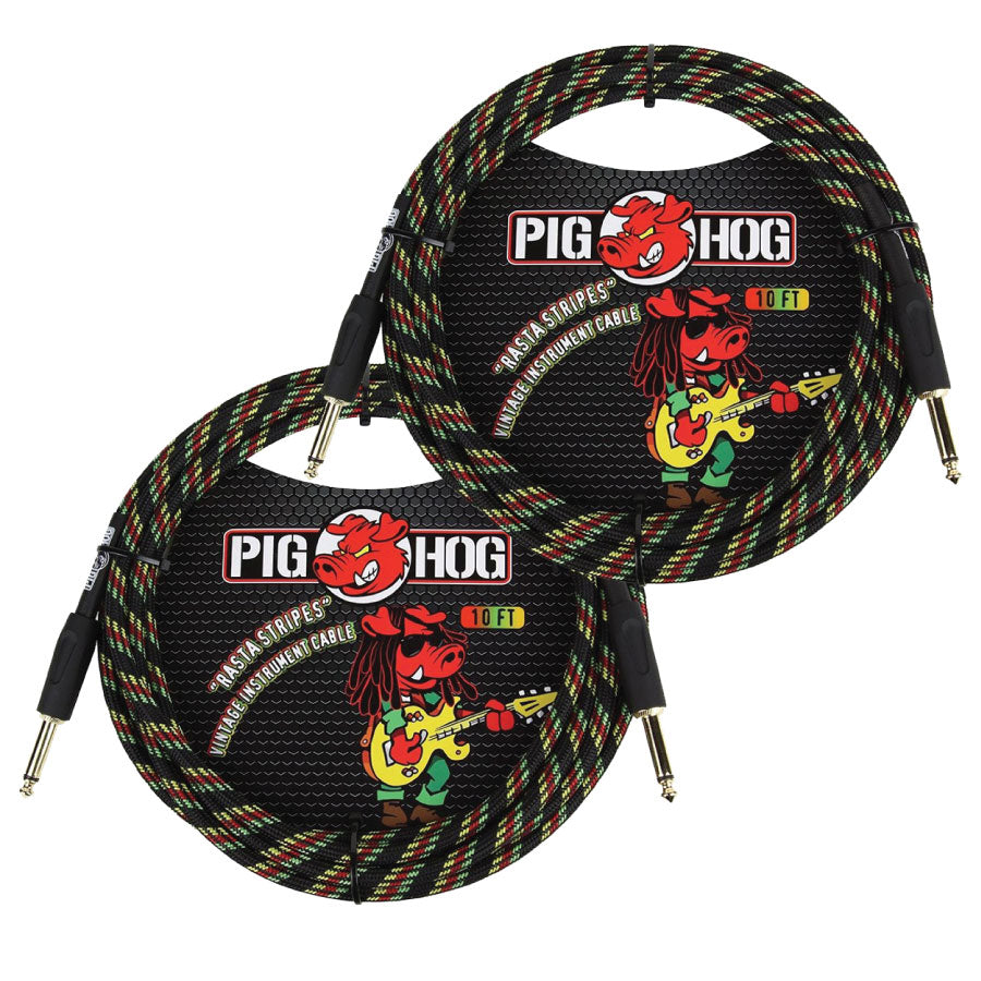 2 Pack Pig Hog PCH10RA "Rasta Stripes" Instrument Cable - 10ft