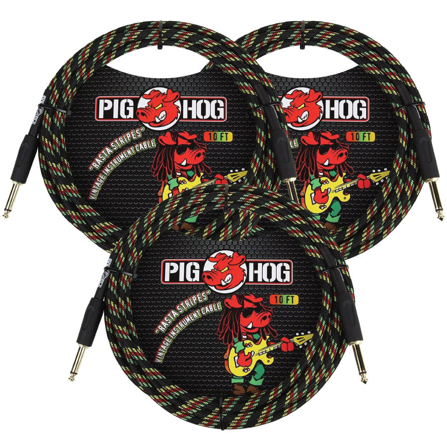 3 Pack Pig Hog PCH10RA "Rasta Stripes" Instrument Cable - 10ft
