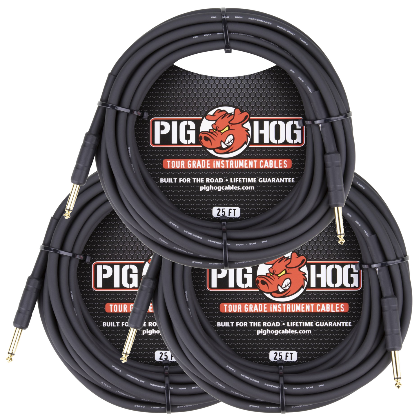 3 Pack Pig Hog Black 25ft 1/4" Guitar Instrument Cable Mono Patch Cord PH25 - NEW