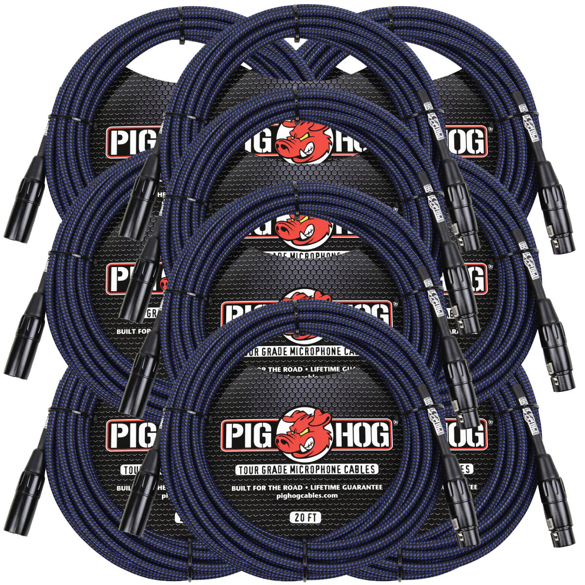 10 Pack Pig Hog Black & Blue High Performance Woven XLR Microphone 20ft Cable PHM20BBL Lifetime Warranty!
