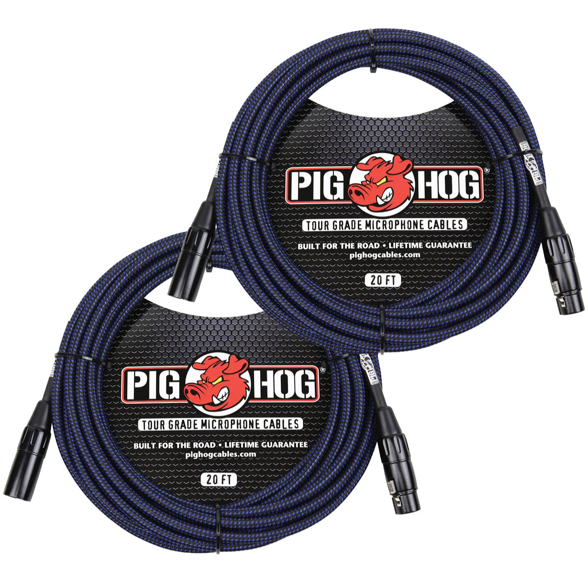 2 Pack Pig Hog Black & Blue High Performance Woven XLR Microphone 20ft Cable PHM20BBL Lifetime Warranty! Pig Hog Vintage Series cables are precisely overbuilt to stand up to the most grueling tour conditions imaginable. They feature extra-thick tour grade wire, unique high quality woven jackets, performance quality connectors, and tension-resistant stress relief. And with Pig Hog's "no question" lifetime guarantee, we've got your back for the life of the cable. Don't settle for those fat-free cables. Grab hold of a Pig Hog!