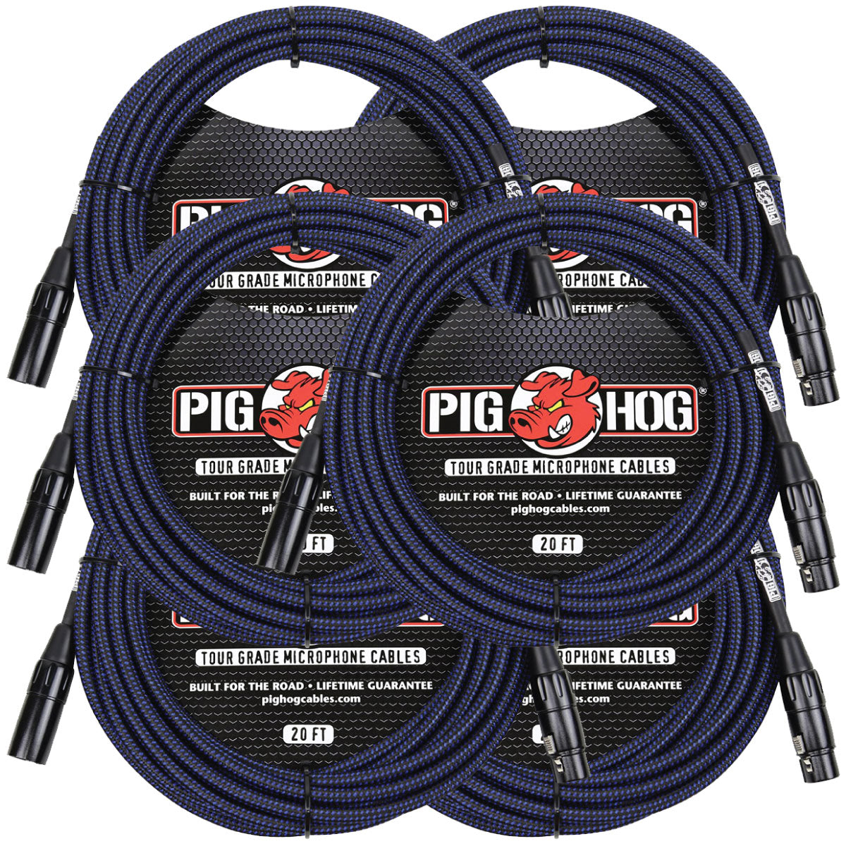 6 Pack Pig Hog Black & Blue High Performance Woven XLR Microphone 20ft Cable PHM20BBL Lifetime Warra