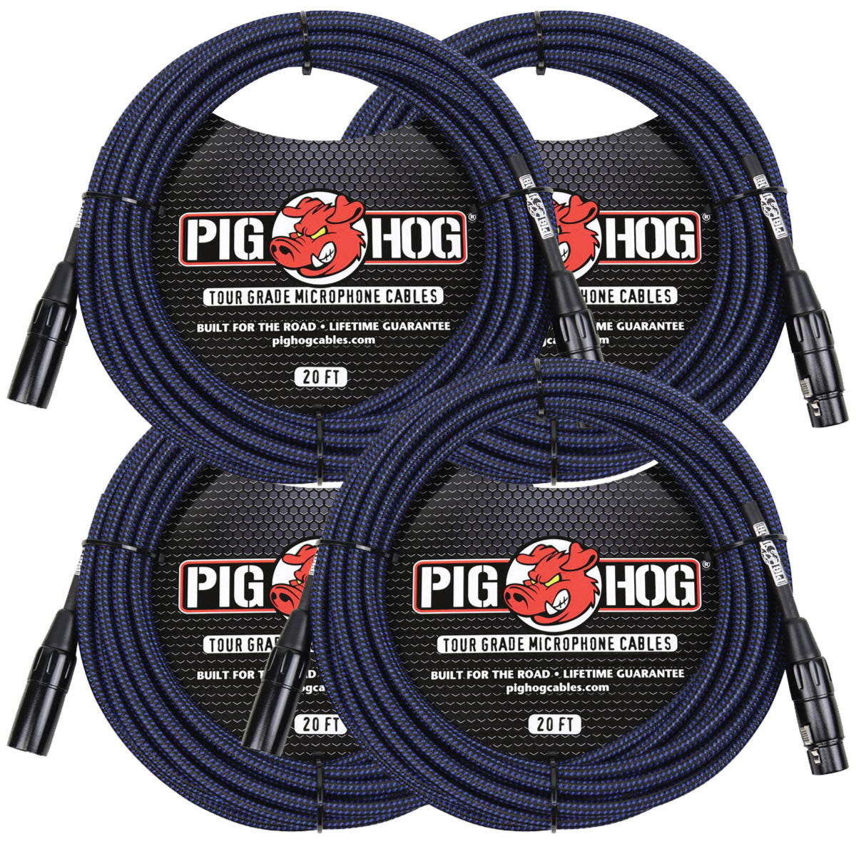 4 Pack Pig Hog Black & Blue High Performance Woven XLR Microphone 20ft Cable PHM20BBL Lifetime Warra
