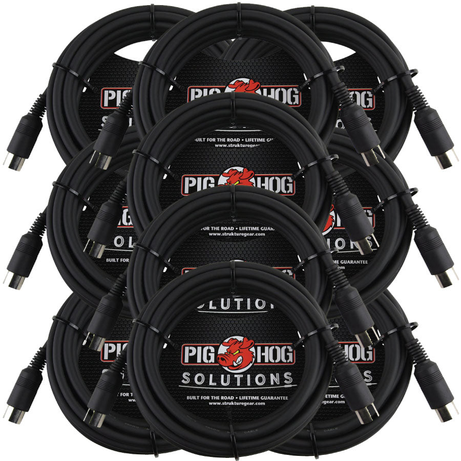 10 Pack Pig Hog Solutions PMID15 - 15ft MIDI Cable Black Instrument Interface - New