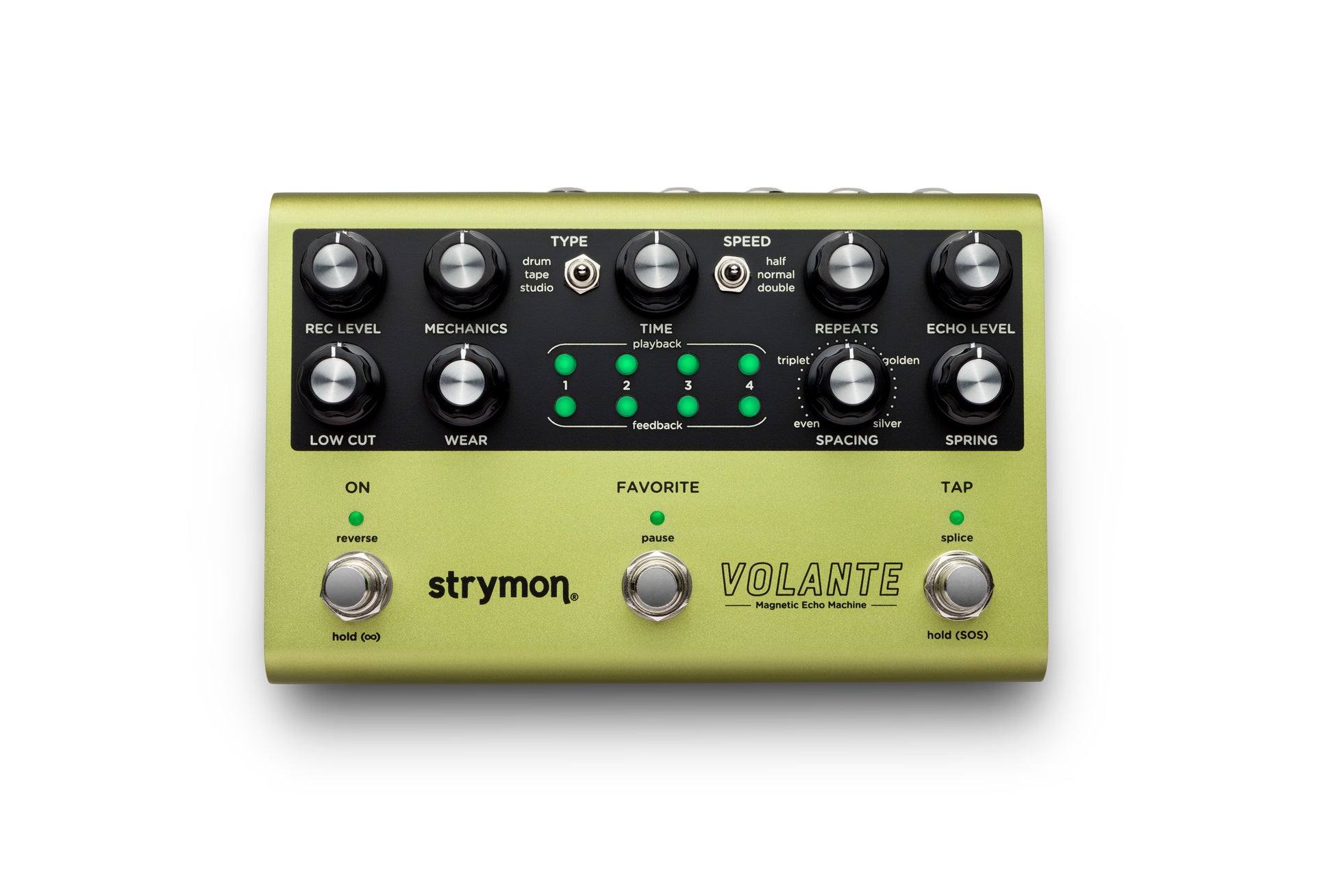 Strymon Volante Magnetic Echo Machine PedalIn Brief: Analog-style Digital Delay Pedal with 3 Echo Types, 4 Playback Heads, Looper, and Spring Reverb.